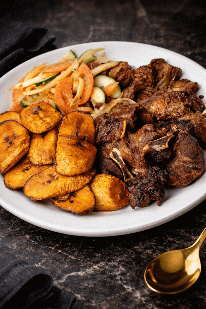 Juicy lamb cuts seasoned with traditional West African spices, flame-grilled and served tender with a rich, smoky finish.
