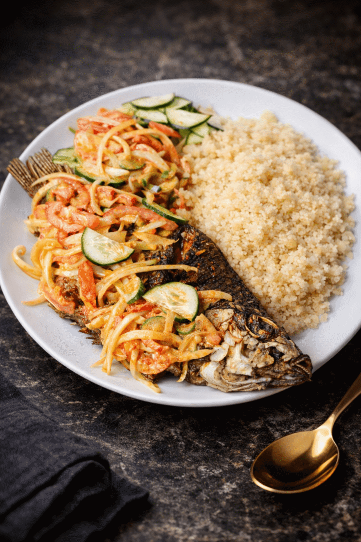 Lightly seasoned whole tilapia, flame-grilled to perfection and served tender, flaky, and infused with smoky flavor.